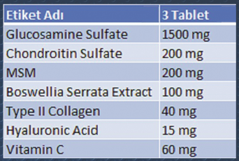 سلفات الغلوكوزامين , سلفات الكوندروتين , هيالورونيك أسيد, MSM , فيتامين س, كولاجين